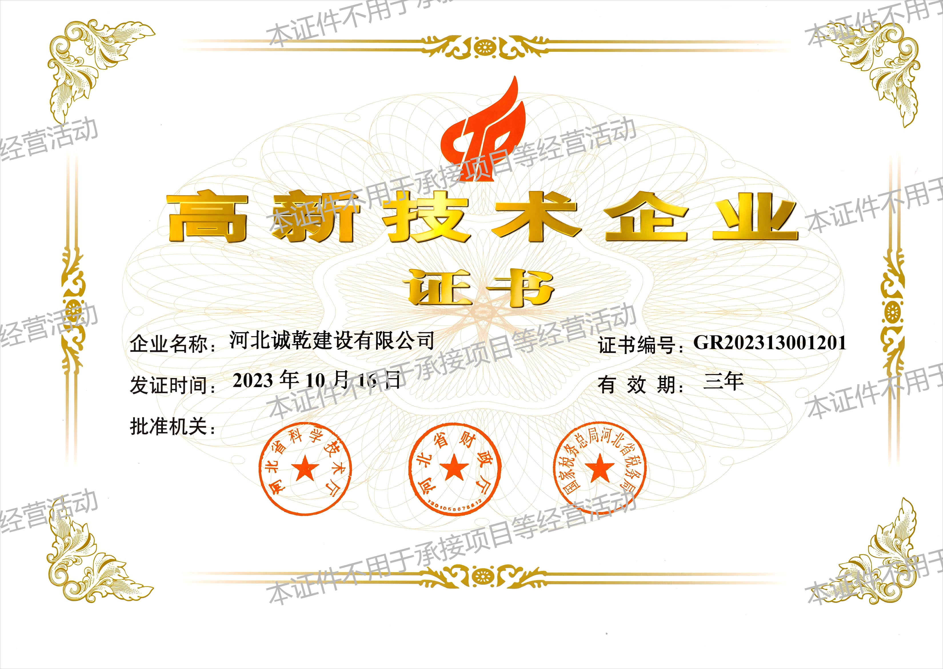 恭賀河北誠乾環保工程有限公司取得市政公用工程施工總承...